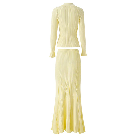 Boss Babe Fresh Lemon Yellow Women Knitted 2PCS Set