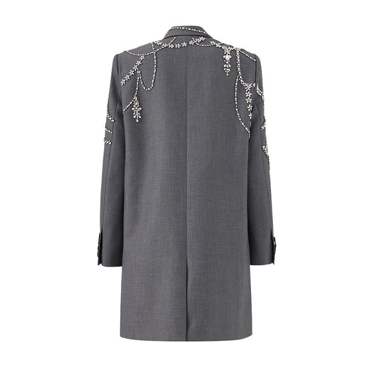 Boss Babe Rhinestone Beading Notched Blazer Dress