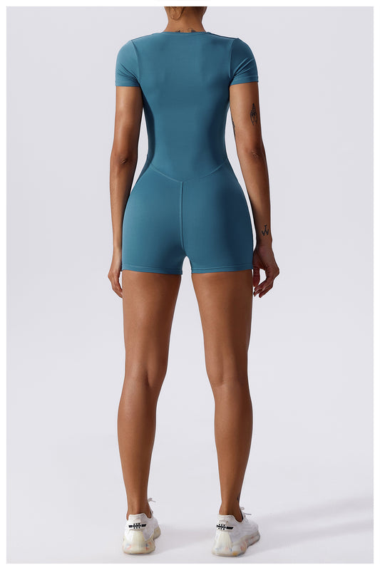Comino Zipper Short Sleeve Yoga Bodysuit