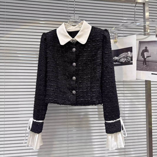 Boss Babe Bow Necktie Sequins Collar Plaid Short & Jacket