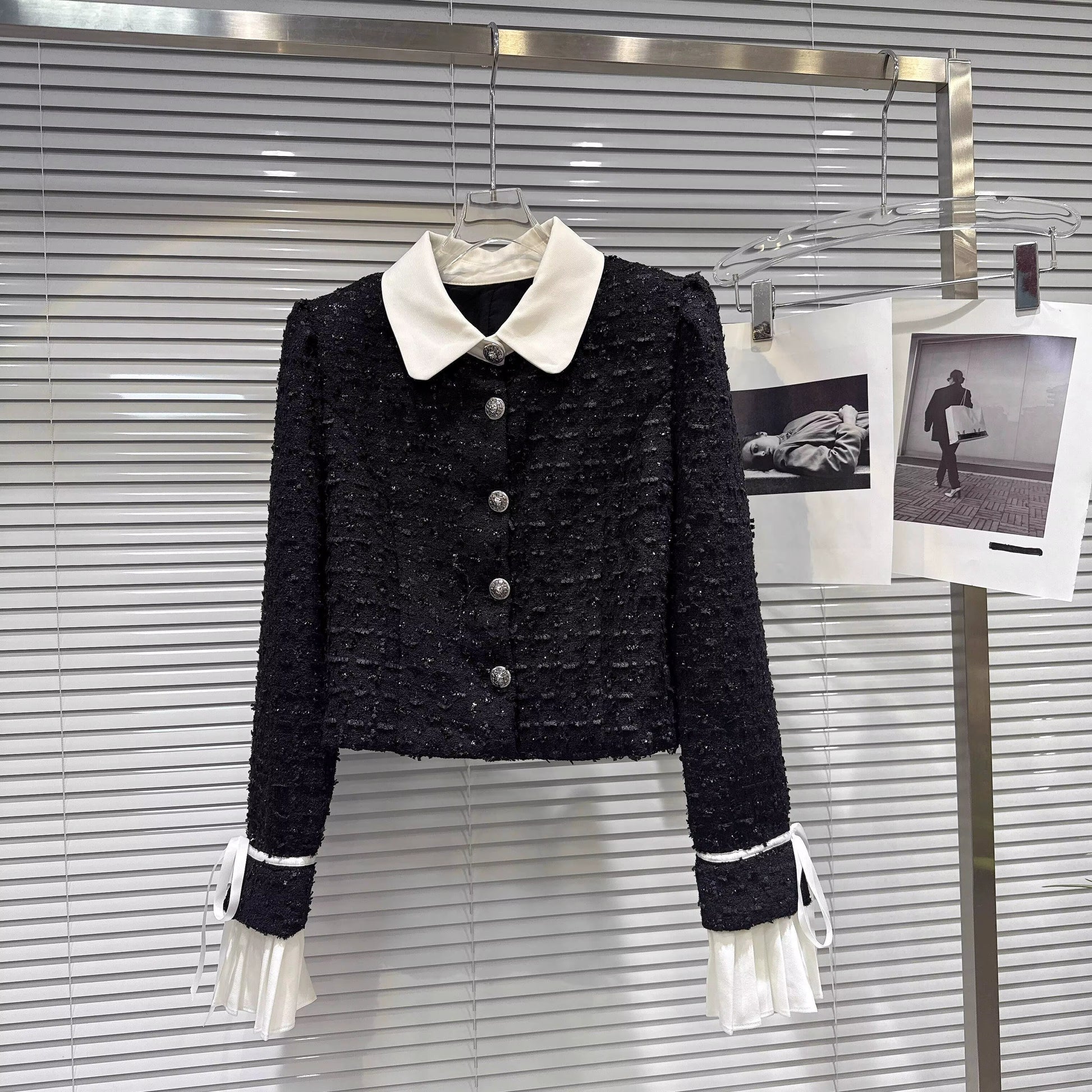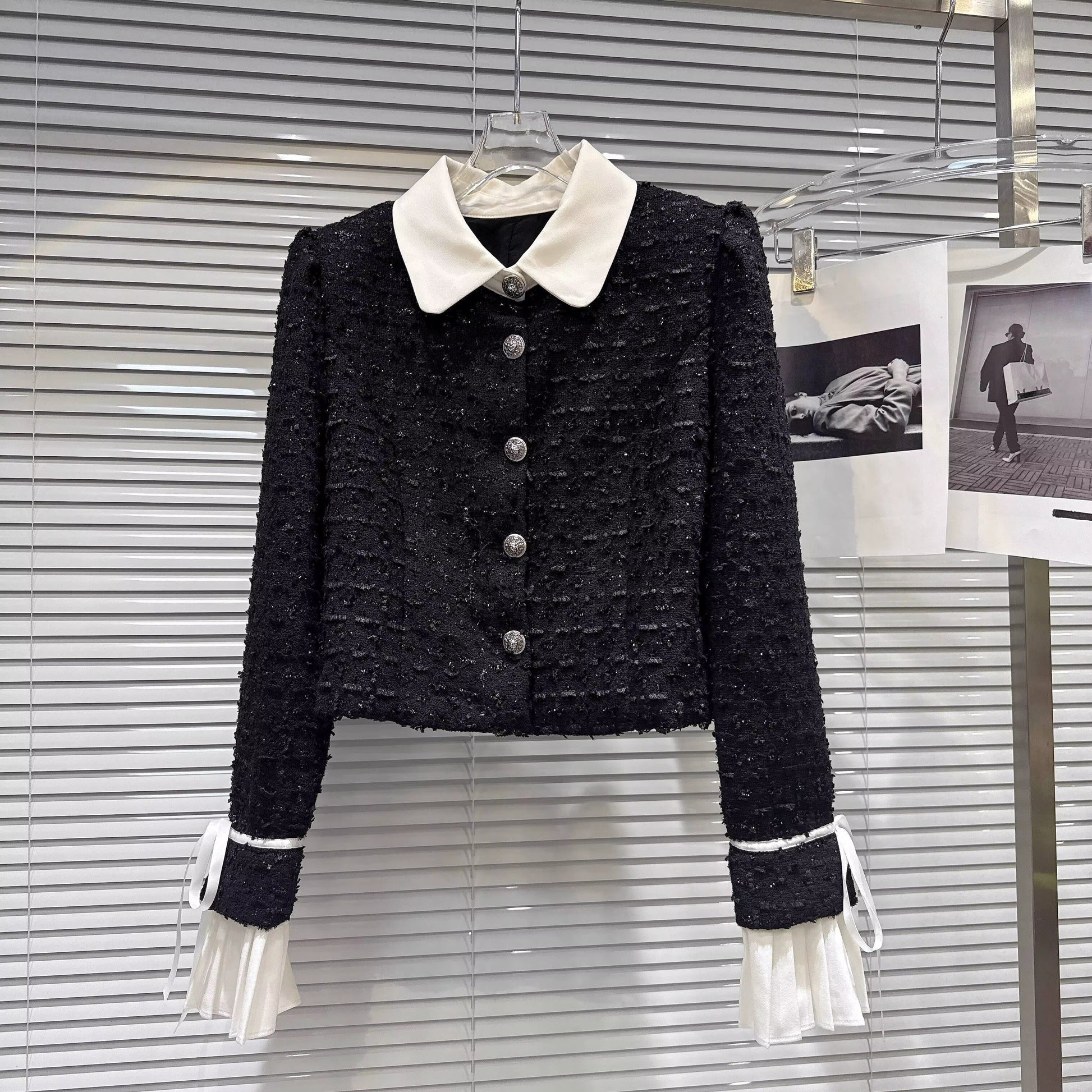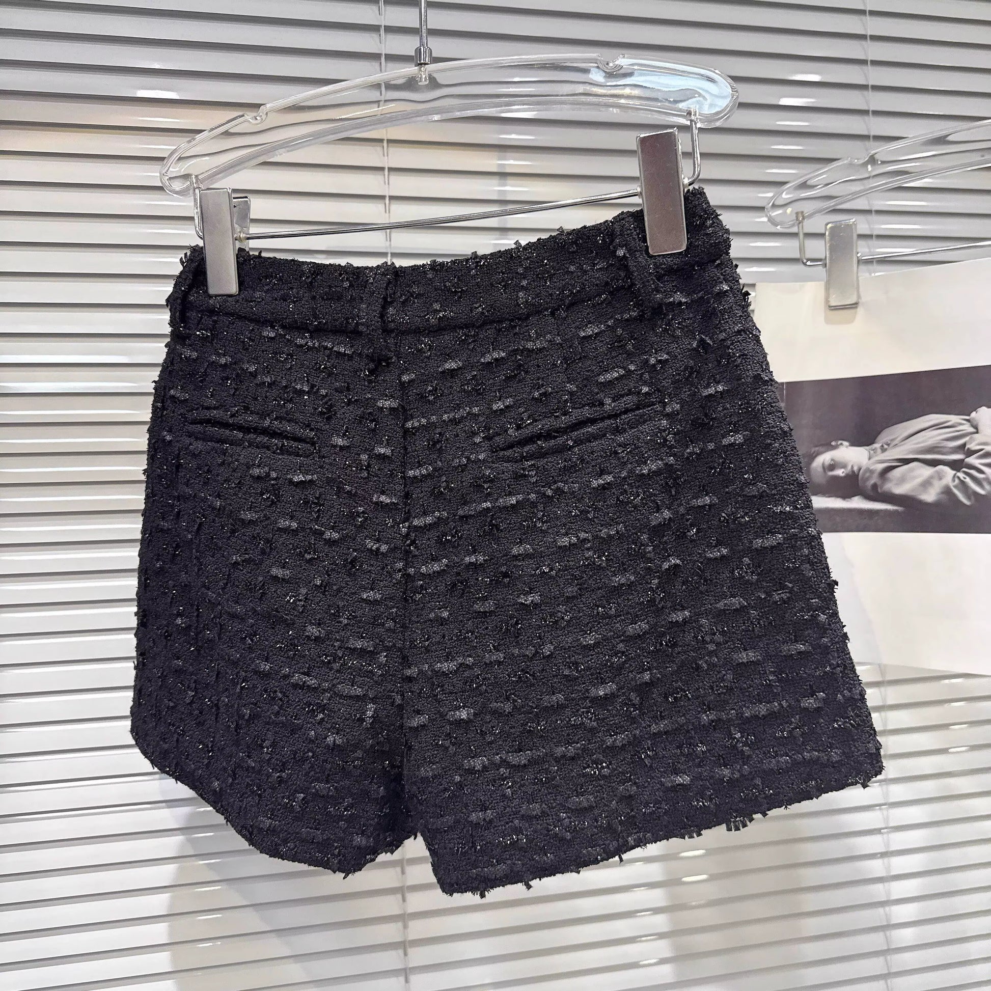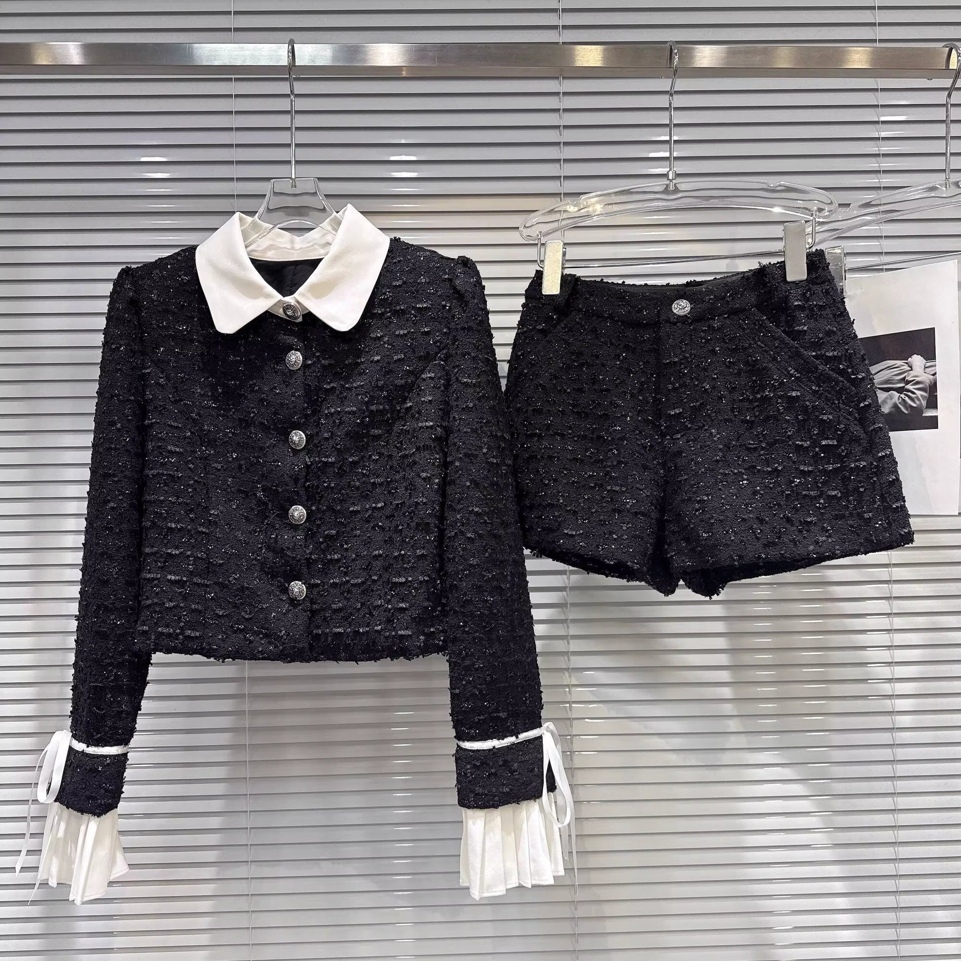Own the room in this bold two-piece set designed for the confident woman. The structured tweed jacket features a striking contrast color collar that commands attention, while the bandage shorts hug your curves in all the right ways. Long sleeves add an unexpected edge to the cropped silhouette, creating a look that's equal parts polished and daring. Perfect for making a statement at the office, night out, or anywhere you want to turn heads. This is power dressing with personality.