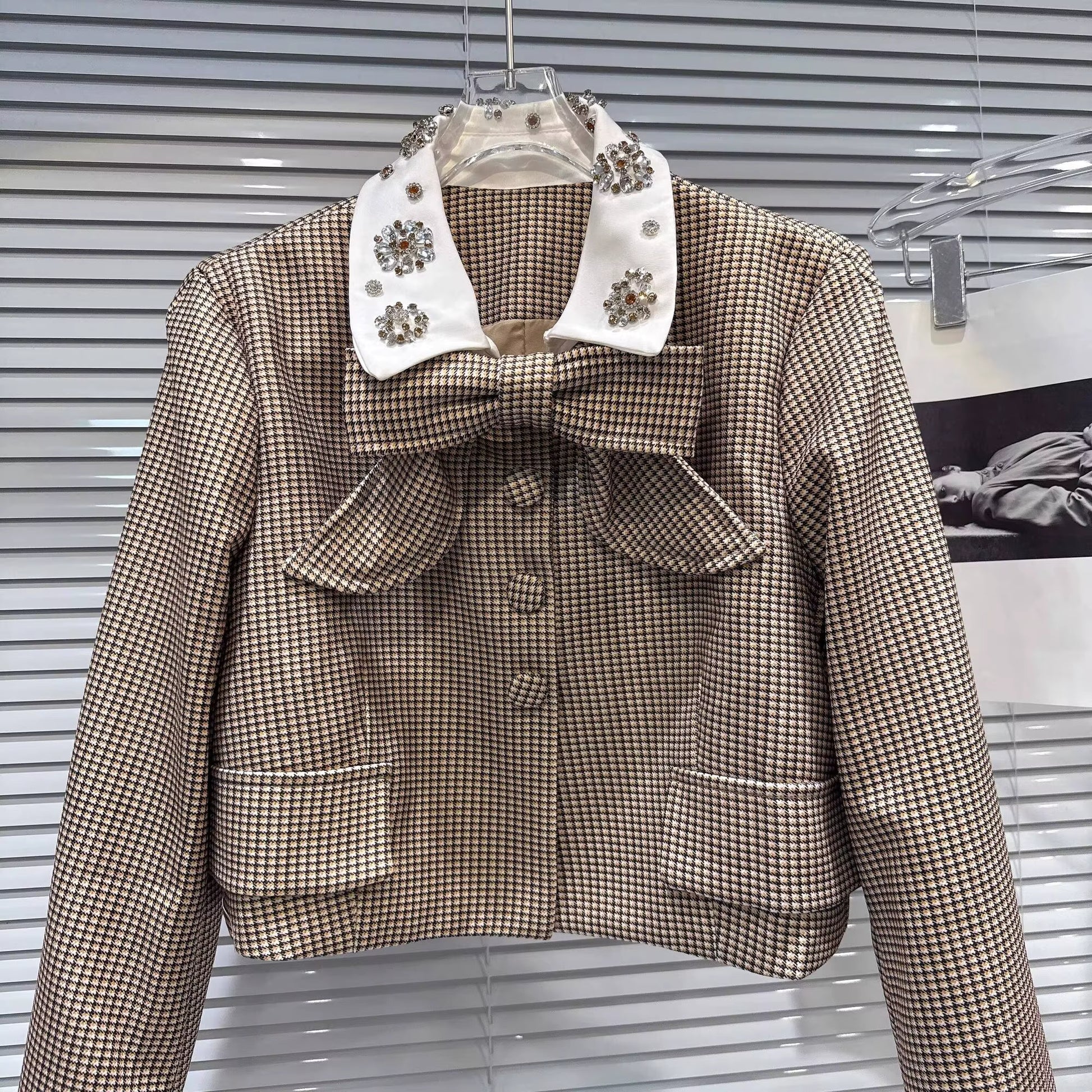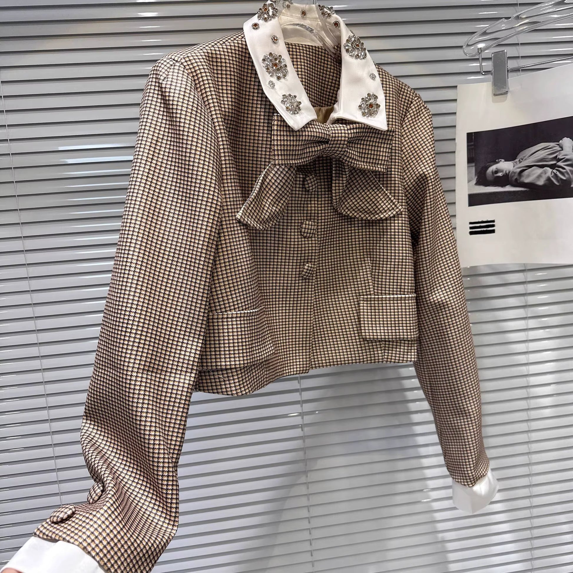 Boss Babe Bow Necktie Sequins Collar Plaid Short & Jacket