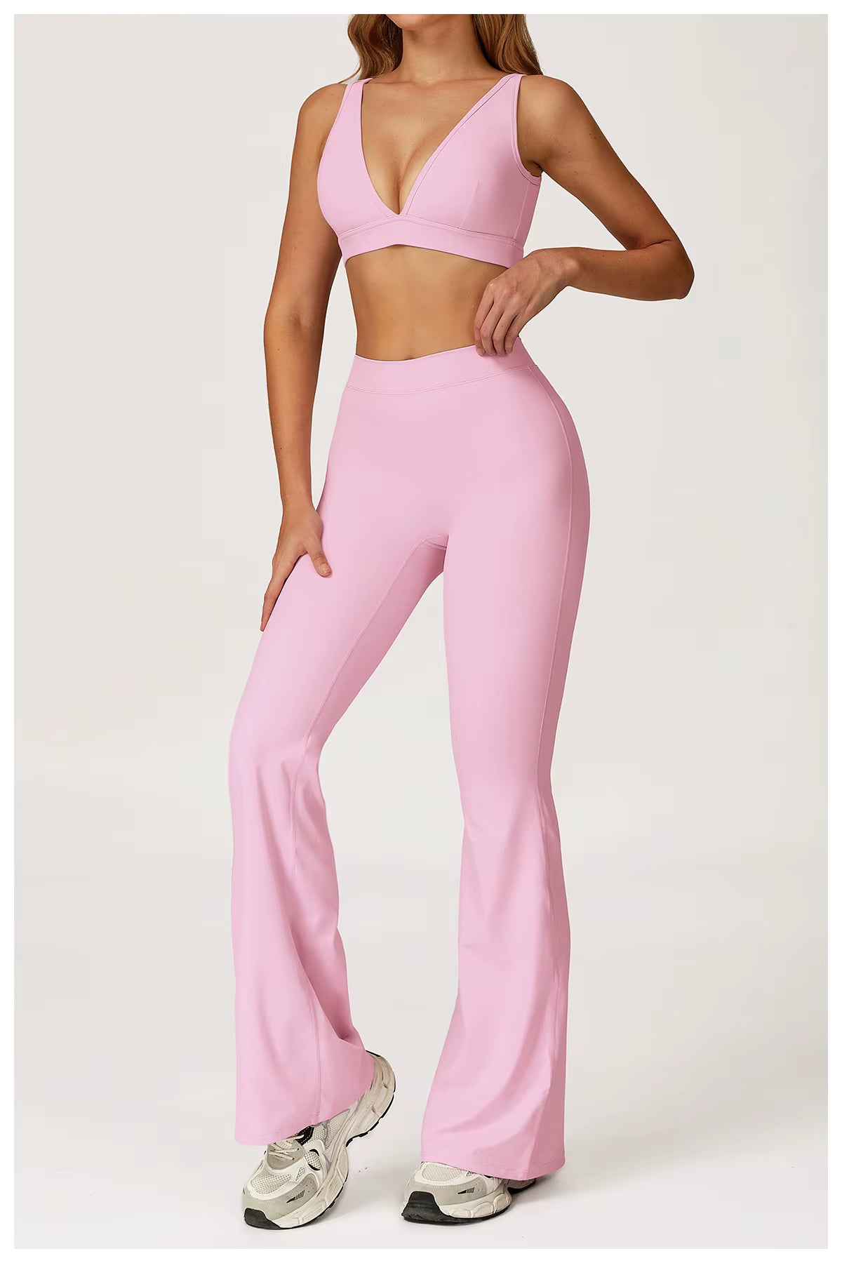 Get ready to turn heads and break a sweat in the Kristine Gym Set—your new go-to for yoga, pilates, gym sessions, and everything in between. This athletic two-piece features a supportive push-up design that keeps you lifted and confident through every movement. The seamless fabric moves with your body, whether you're flowing on the mat or powering through cardio. Designed for women who want their workout gear to work as hard as they do, with a flattering silhouette that makes you feel unstoppable. Comfort meets confidence in every rep.