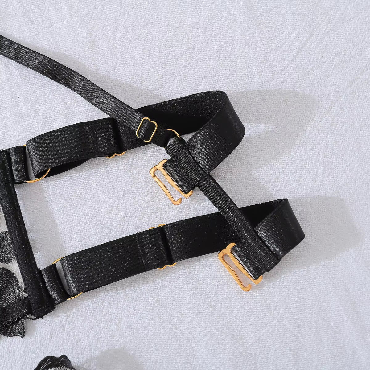 Get ready to turn up the heat with our Lingerie Carmelita! This elegant 5PC set features sexy and fancy lingerie with embroidered tulle lace, perfect for adding a touch of seduction to any outfit. Feel empowered and confident, this sissy girl's go-to for erotic and playful vibes.