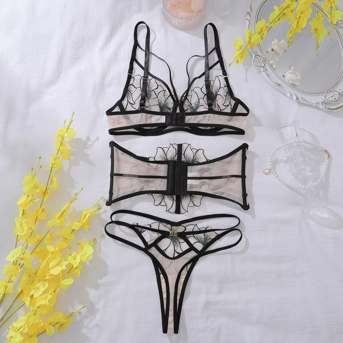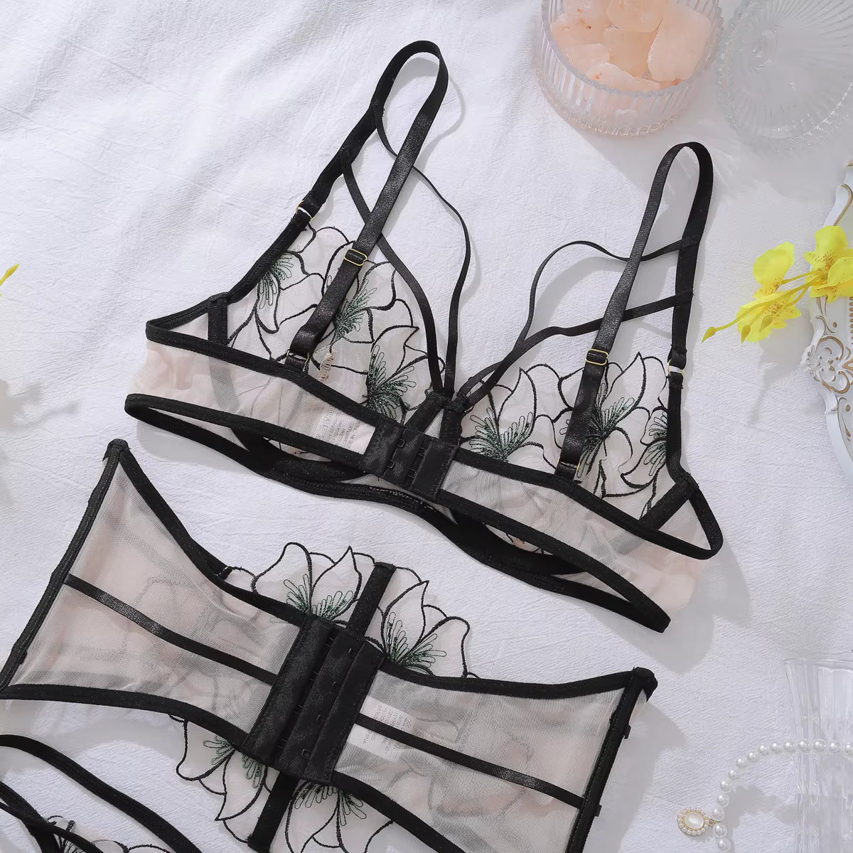 Discover the playful charm of the Lingerie Marisa, featuring a sensual belt bra with delicate fairy embroidery that adds a touch of magic to your intimate wear. Designed to highlight your curves, this sexy set brings a confident, flirty vibe to any special occasion or private moment. Embrace your bold side with this enchanting outfit straight from the spirit of the night.