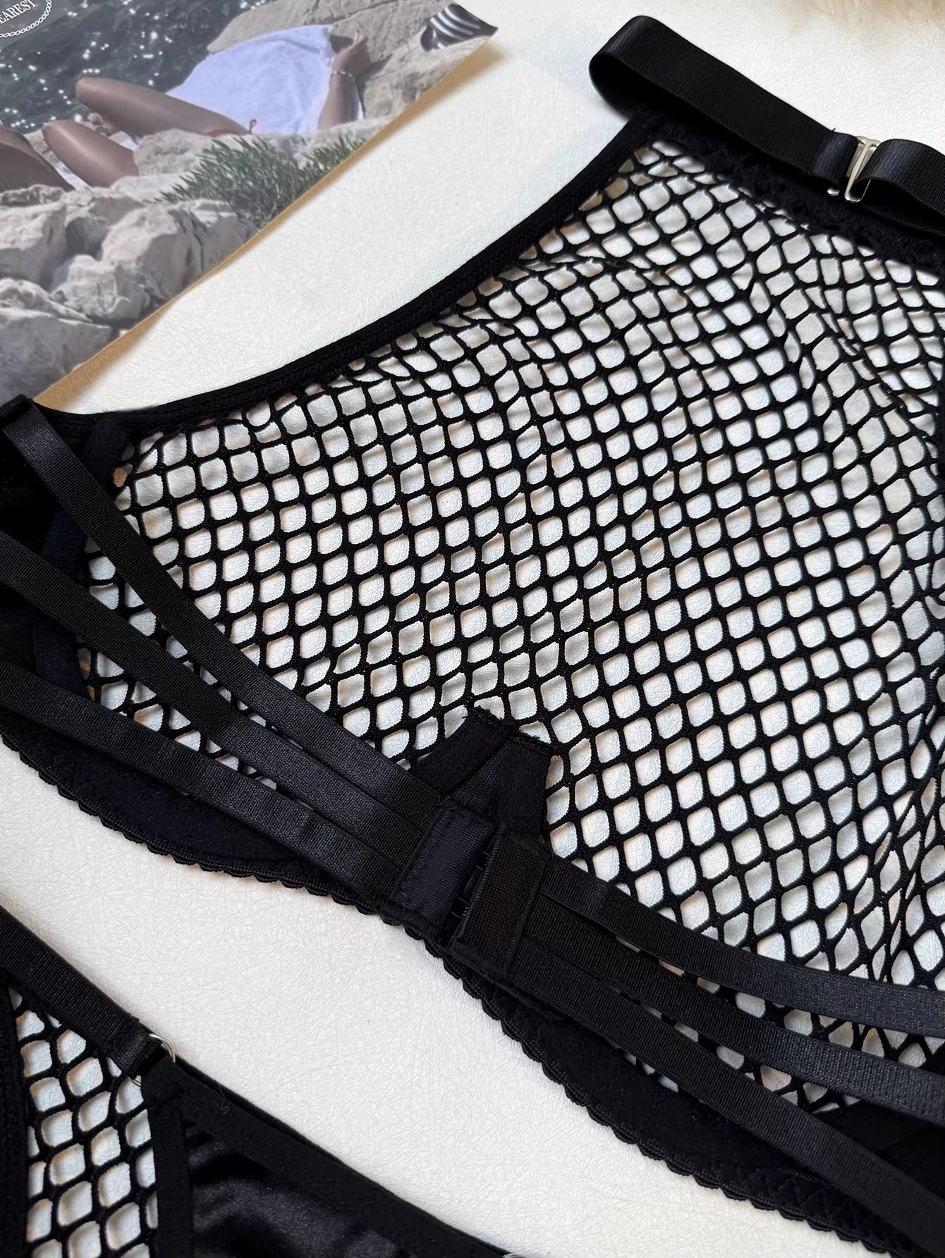 Unleash your inner confidence with the Charmaine lingerie set—a daring two-piece ensemble designed to turn heads. Featuring a seductive hollow fishnet tank top paired with a matching thong, this backless beauty combines comfort with undeniable allure. Perfect for special occasions or intimate moments, the intricate cutout details and playful design make a bold statement. Slip into something that celebrates your sensuality and makes you feel absolutely irresistible.