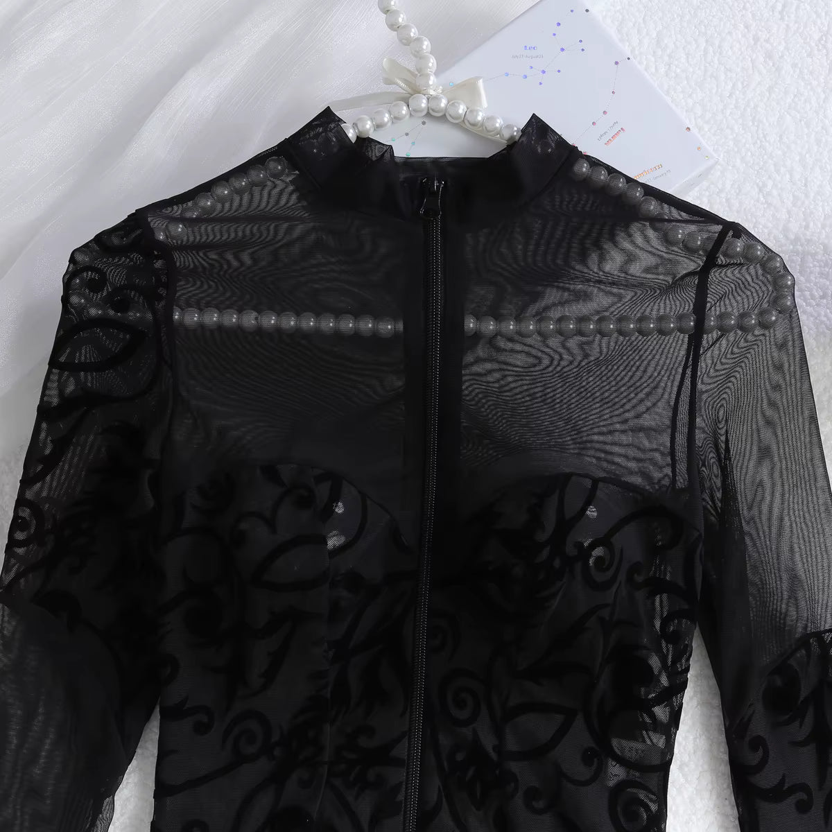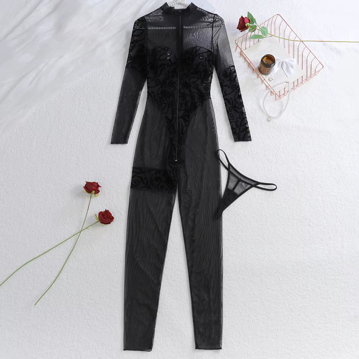 Elevate your intimate wardrobe with the Lingerie Himig—a daring two-piece set that combines elegance with allure. Featuring a long-sleeve embroidered zip jumpsuit paired with a coordinating body thong, this collection showcases exclusive patterns designed to flatter and captivate. The thoughtful construction ensures comfort while the intricate embroidery details add a touch of sophistication. Perfect for those who appreciate quality lingerie that makes a statement.