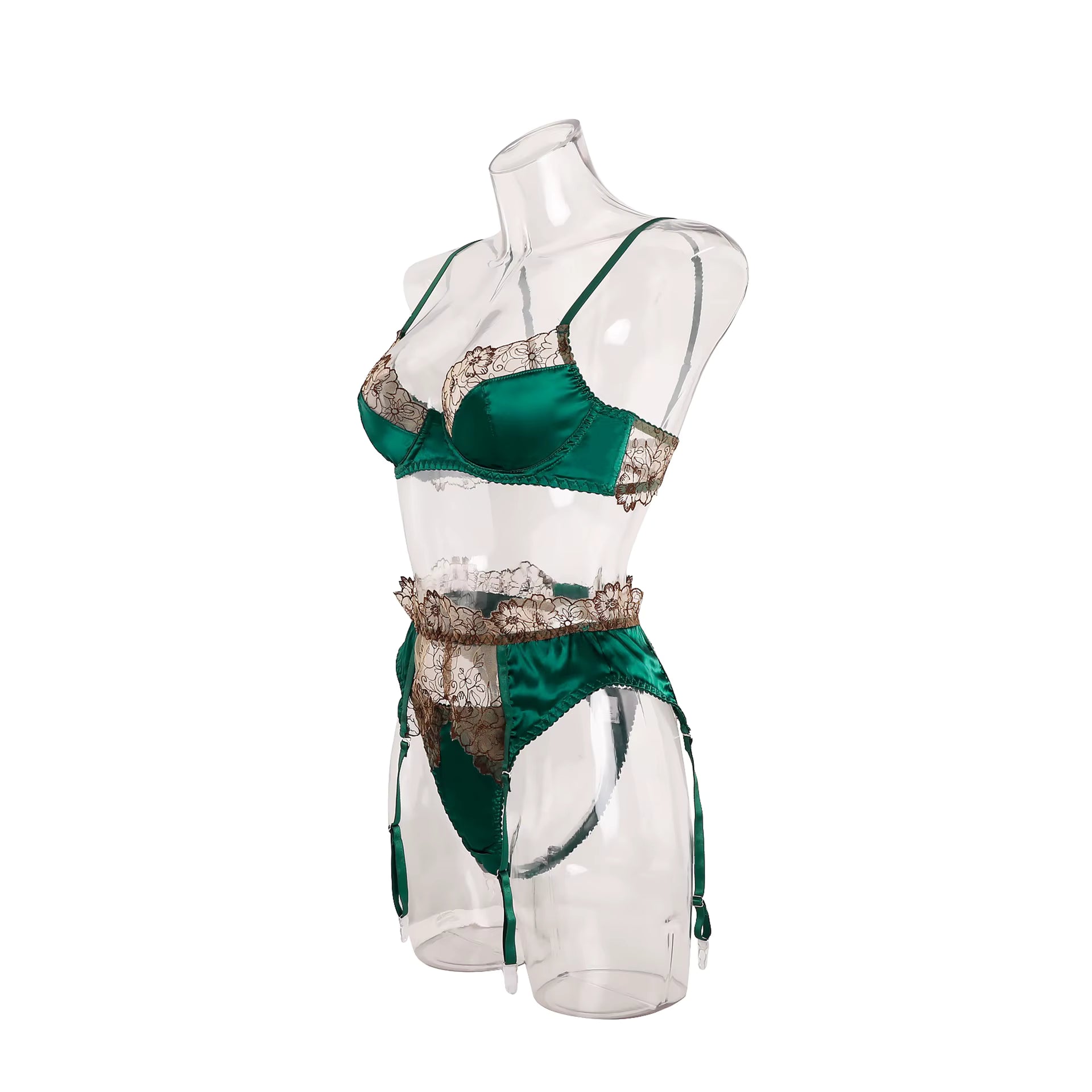 Embrace your sensual side with Lingerie Isabella, a luxurious satin slip set featuring delicate lace splicing and ultra-thin floral details. This playful bra and thong combo enhances your allure while offering a silky smooth feel against your skin. Perfect for special moments when you want to feel both empowered and irresistibly feminine.