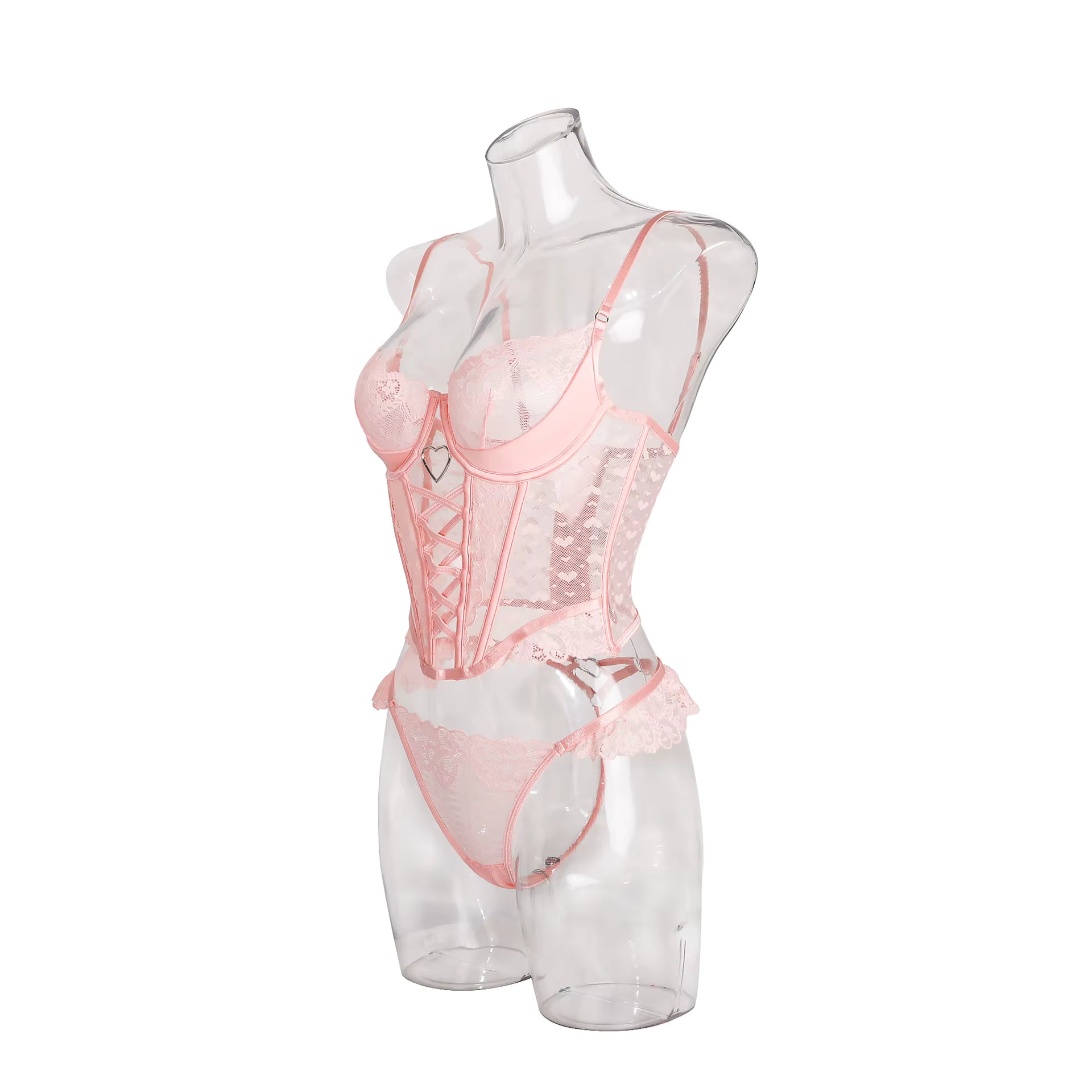 Ignite passion with Lingerie Jazmín, a playful blend of sweet heart-shaped lace and daring push-up design. This sexy corset and thong set enhances your curves while embracing ethical craftsmanship, letting you feel confident and irresistible. Perfect for turning up the heat with pure desire, it’s your go-to for nights that need a little extra sparkle.